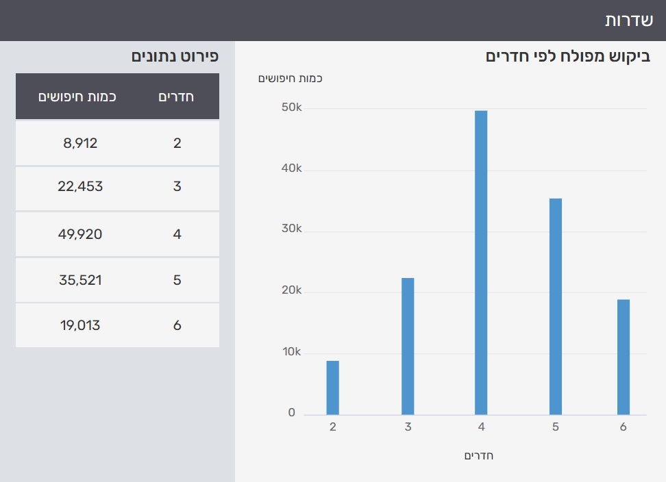 להלן התפלגות כמות החיפושים הכוללת בשדרות, על פי סוגי הדירות: