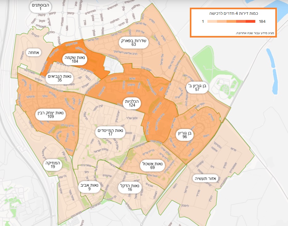 היצע דירות בנות 4 חד' מיד שנייה בשכונות העיר בשנה האחרונה – בממוצע חודשי