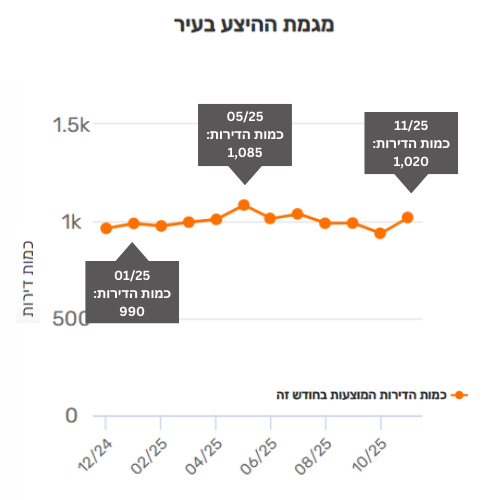 - לאחר ירידה קלה בהיצע באוקטובר, בחודש נובמבר האחרון הוצעו למכירה כ-1,020 דירות ברחבי העיר.