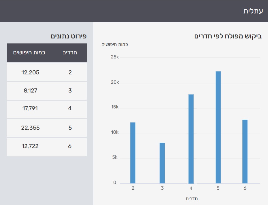 להלן התפלגות כמות החיפושים הכוללת בעתלית, על פי סוגי הדירות: