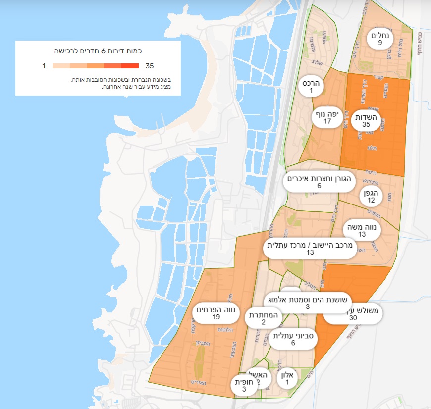 היצע דירות בנות 6 חד' מיד שנייה בשכונות העיר בשנה האחרונה – בממוצע חודשי