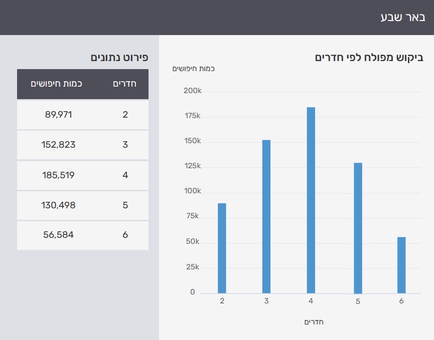 להלן התפלגות כמות החיפושים הכוללת בבאר שבע, על פי סוגי הדירות: