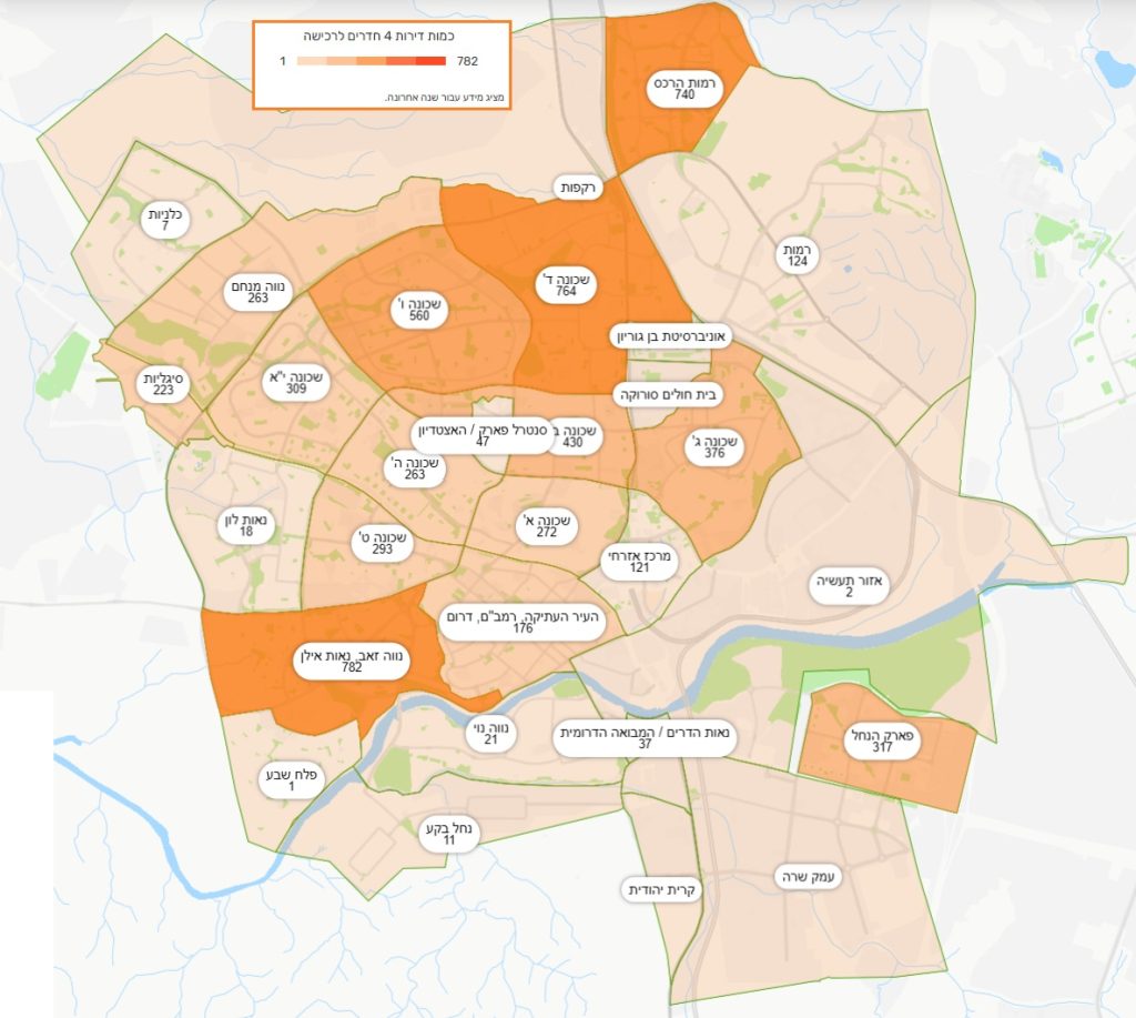 היצע דירות בנות 4 חד' מיד שנייה בשכונות העיר בשנה האחרונה – בממוצע חודשי