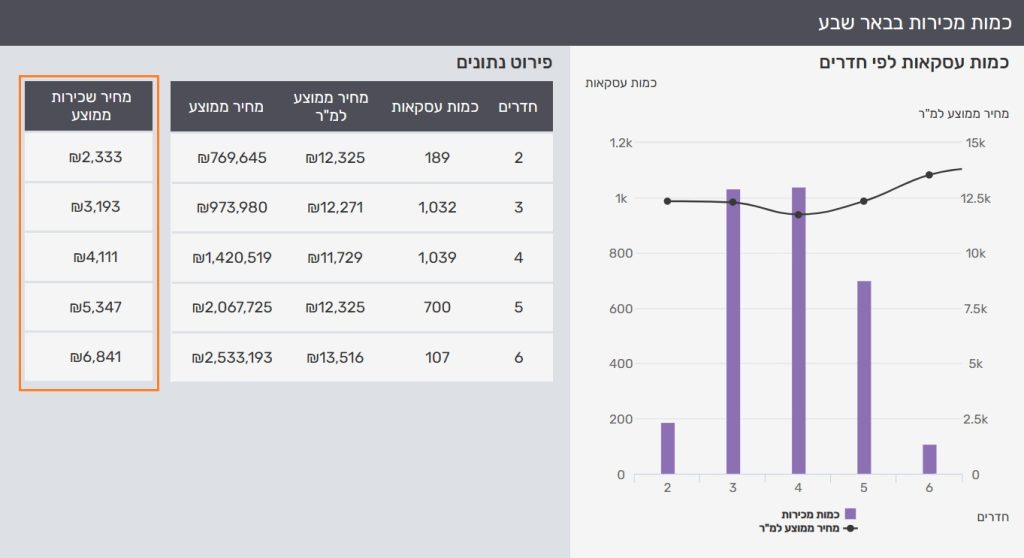 בכמה נמכרו בפועל דירות (בנות 2 – 6 חדרים) בבאר שבע ומה מחירי השכירות