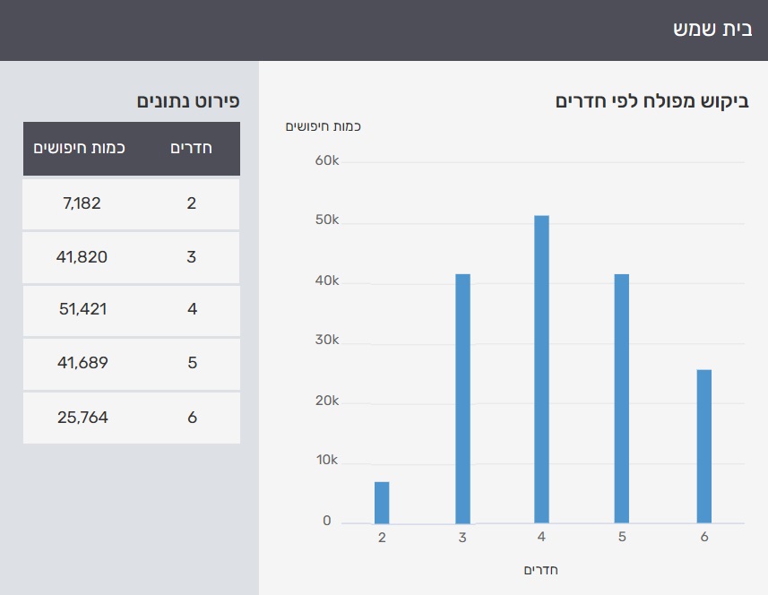 להלן התפלגות כמות החיפושים הכוללת בבית שמש, על פי סוגי הדירות: