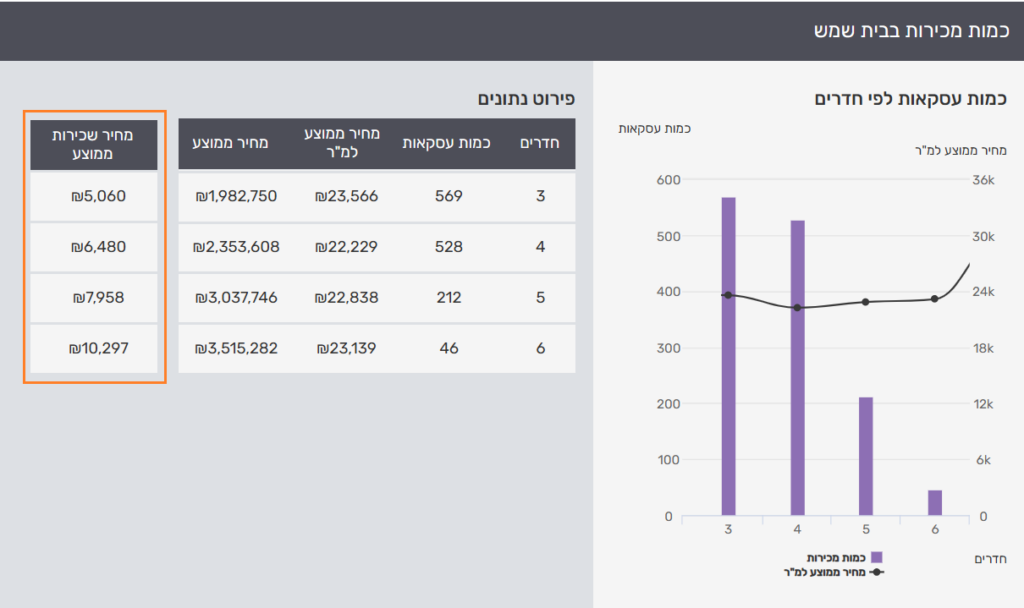 בכמה נמכרו בפועל דירות (בנות 3 – 6 חדרים) בבית שמש ומה מחירי השכירות