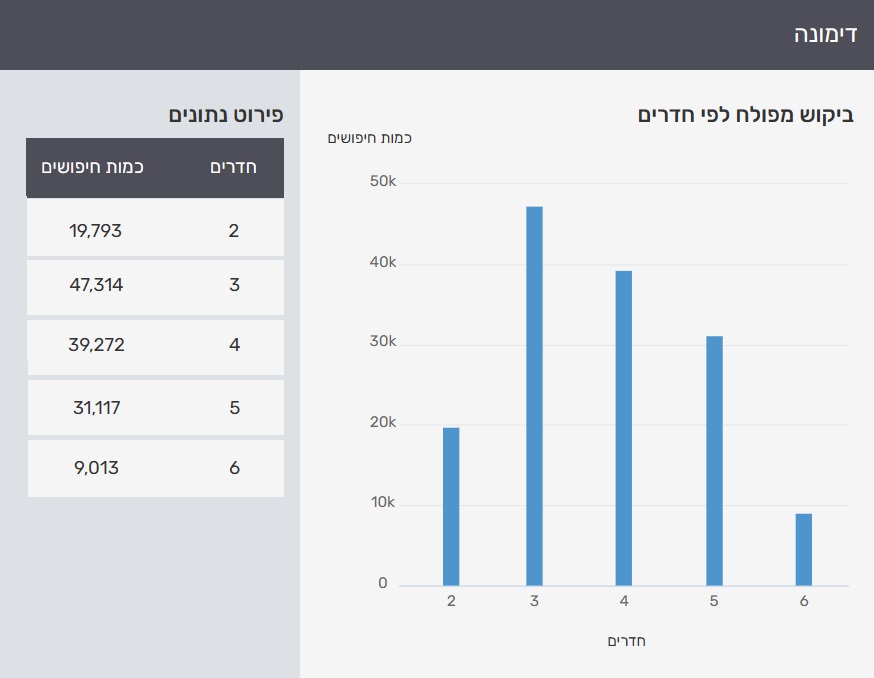 להלן התפלגות כמות החיפושים הכוללת בדימונה, על פי סוגי הדירות: