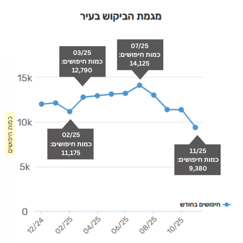 - הירידה נמשכה גם בספטמבר ובאוקטובר, עם כ-11,380 מחפשים מידי חודש בממוצע.