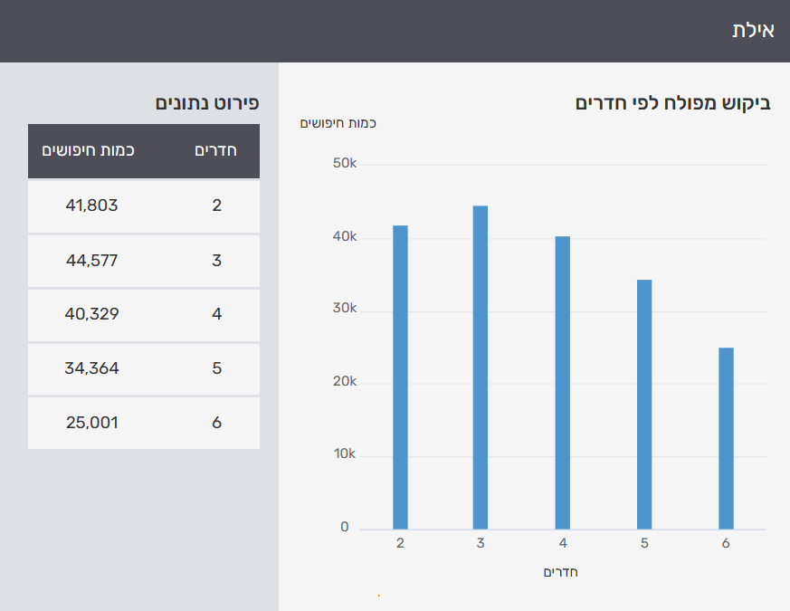 להלן התפלגות כמות החיפושים הכוללת באילת, על פי סוגי הדירות: