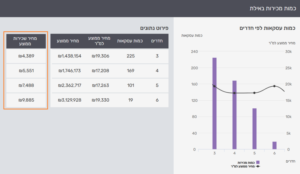 בכמה נמכרו בפועל דירות (בנות 3 – 6 חדרים) באילת ומה מחירי השכירות
