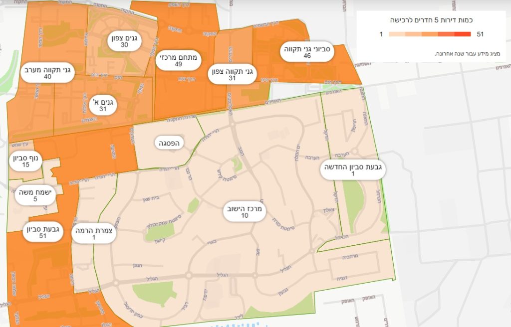 היצע דירות בנות 5 חד' מיד שנייה בשכונות העיר בשנה האחרונה – בממוצע חודשי