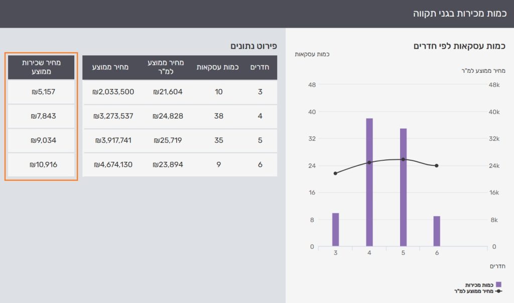 בכמה נמכרו בפועל דירות (בנות 3 – 6 חדרים) בגני תקווה ומה מחירי השכירות