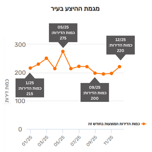 • ברבעון הראשון של 2025 הוצעו מידי חודש בין כ-230 ל-250 דירות.