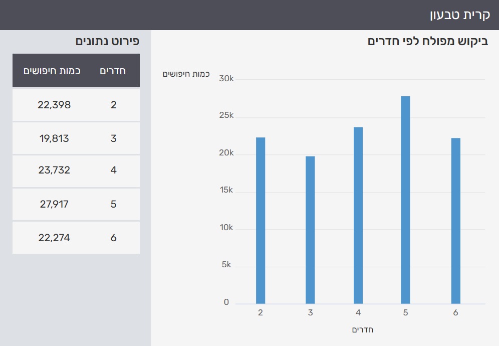 להלן התפלגות כמות החיפושים הכוללת בקריית טבעון, על פי סוגי הדירות: