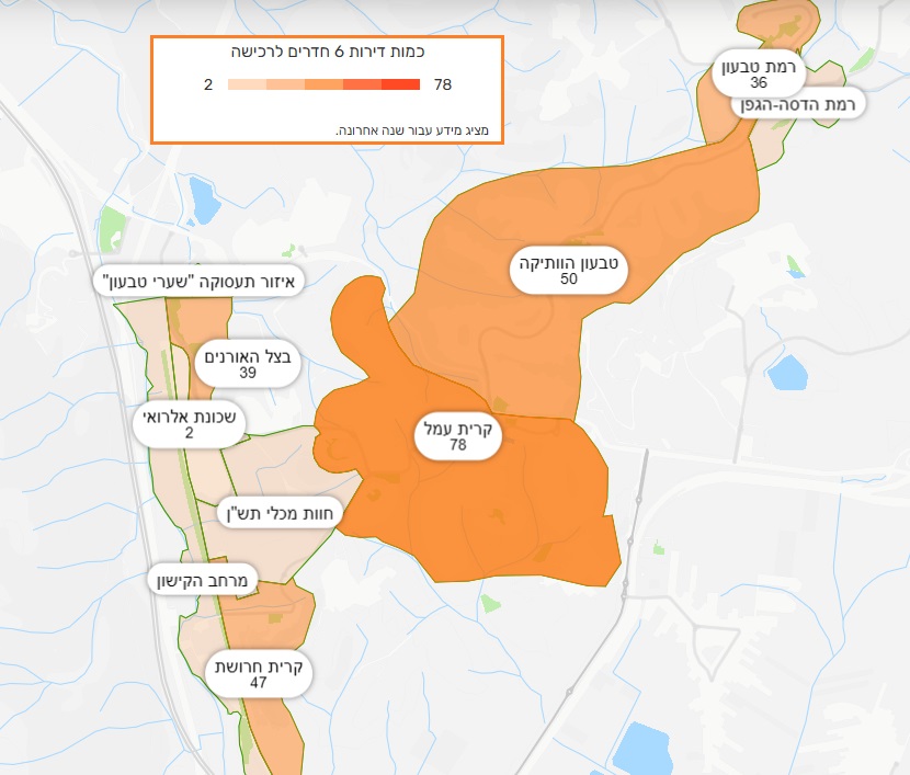 *בטבעון הוותיקה, ההיצע הגבוה ביותר לדירות יד שנייה, עם כ-280 דירות שהוצעו למכירה בשנה האחרונה לעומת כ-20 דירות בשכונת אלרואי.