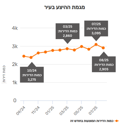 - בחודש אוגוסט האחרון ירד היצע הדירות ועמד על כ-2,905 דירות שהוצעו למכירה ברחבי העיר.
