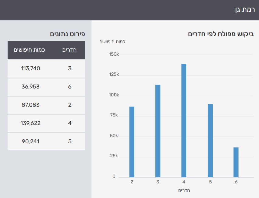 להלן התפלגות כמות החיפושים הכוללת ברמת גן, על פי סוגי הדירות: