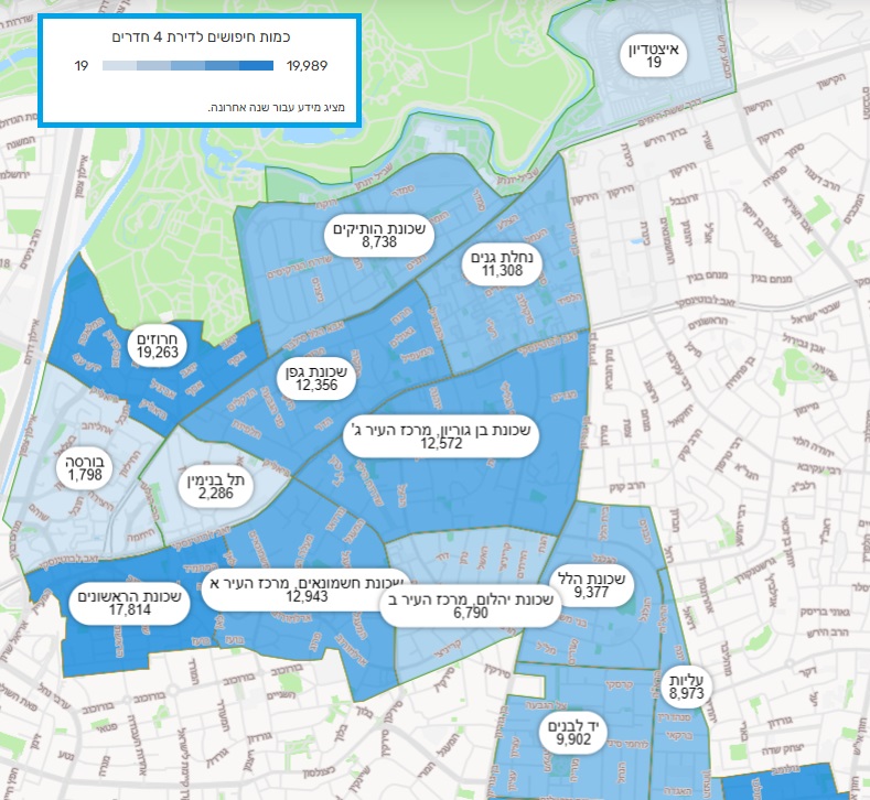 ממוצע חודשי – כמות חיפושים לדירות 4 חד' על פני שכונות העיר
