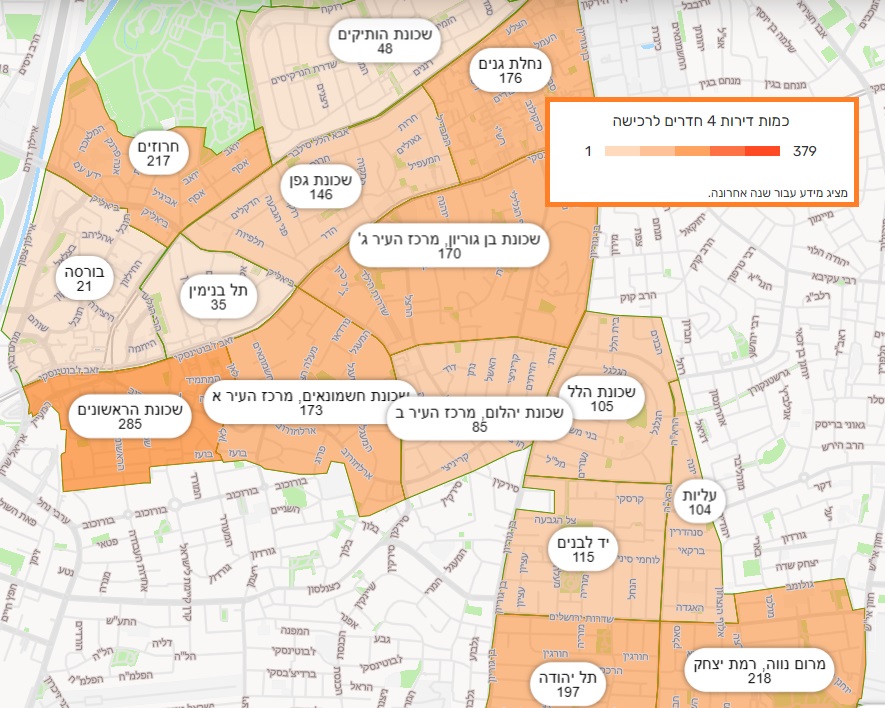 היצע דירות בנות 4 חד' מיד שנייה בשכונות העיר בשנה האחרונה – בממוצע חודשי