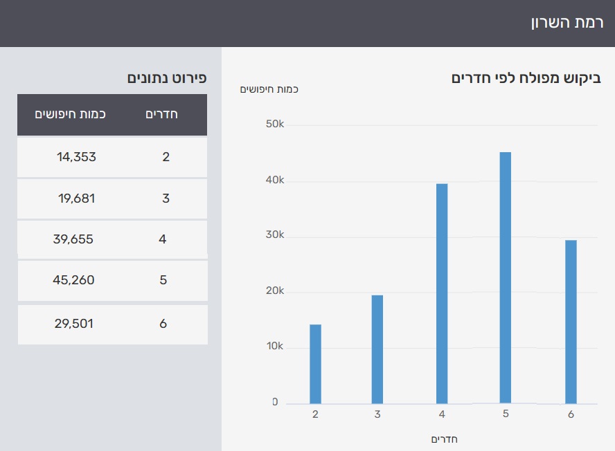 להלן התפלגות כמות החיפושים הכוללת ברמת השרון, על פי סוגי הדירות: