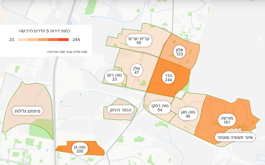 *בשכונת הדר ההיצע הגבוה ביותר לדירות יד שנייה, עם כ-612 דירות שהוצעו למכירה בשנה האחרונה לעומת כ-280 דירות בשכונת גולן.