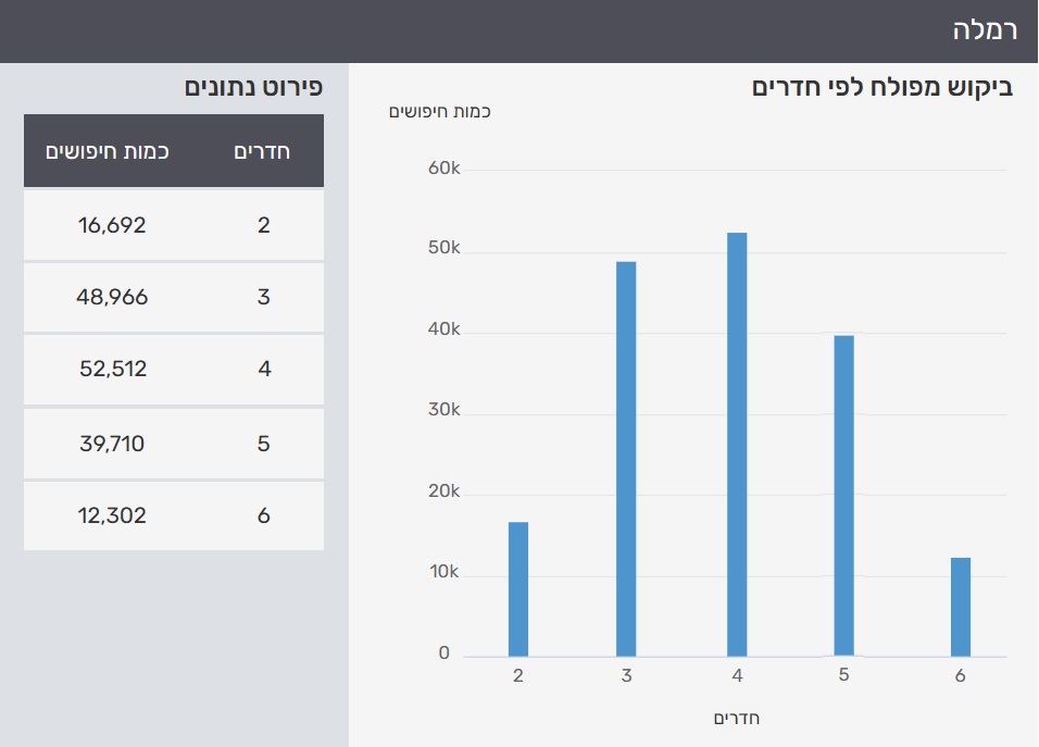 להלן התפלגות כמות החיפושים הכוללת ברמלה, על פי סוגי הדירות: