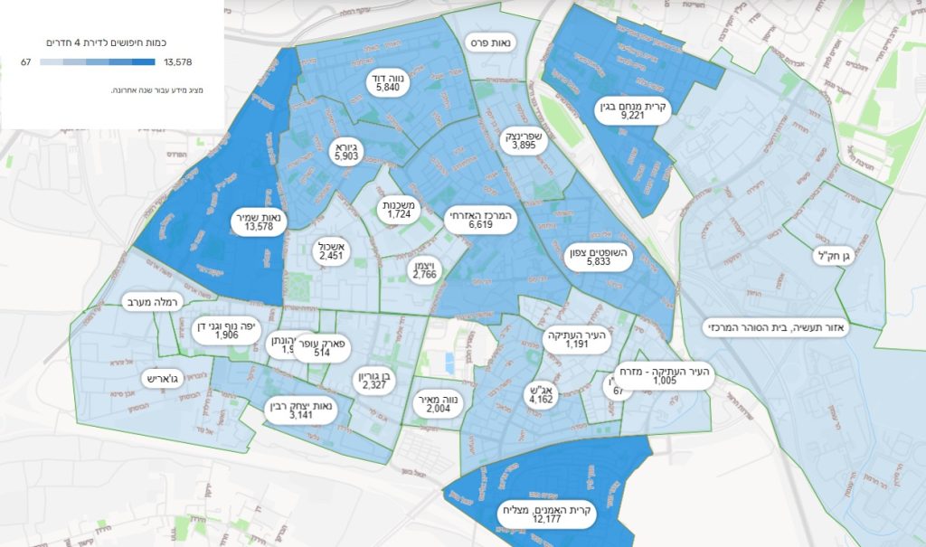 ממוצע חודשי – כמות חיפושים לדירות 4 חד' על פני שכונות העיר