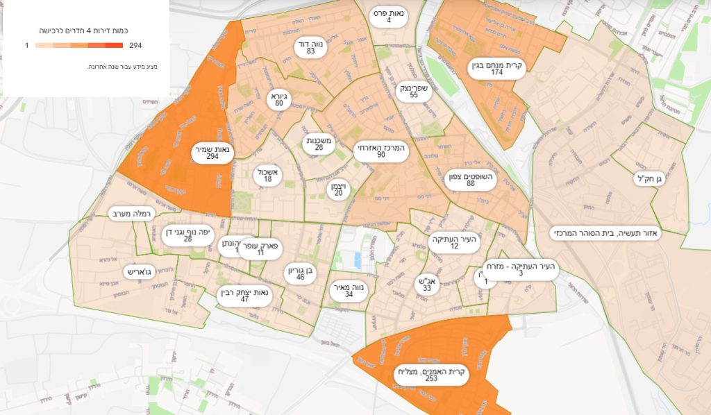 היצע דירות בנות 4 חד' מיד שנייה בשכונות העיר בשנה האחרונה – בממוצע חודשי