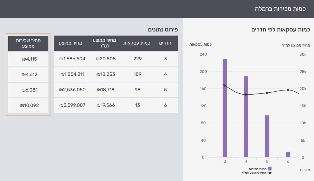 בכמה נמכרו בפועל דירות (בנות 3 – 6 חדרים) ברמלה ומה מחירי השכירות