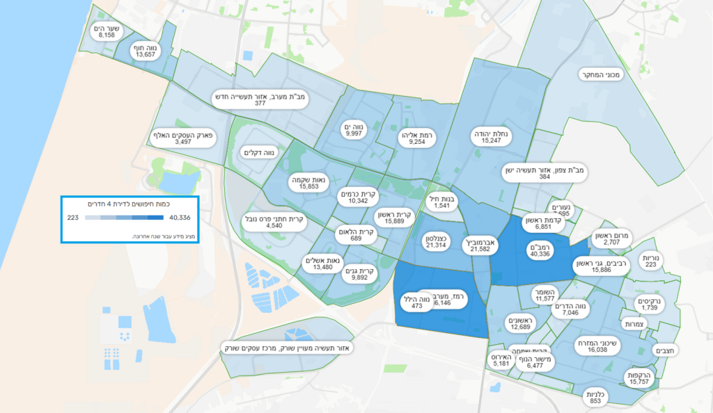 ממוצע חודשי – כמות חיפושים לדירות 4 חד' על פני שכונות העיר