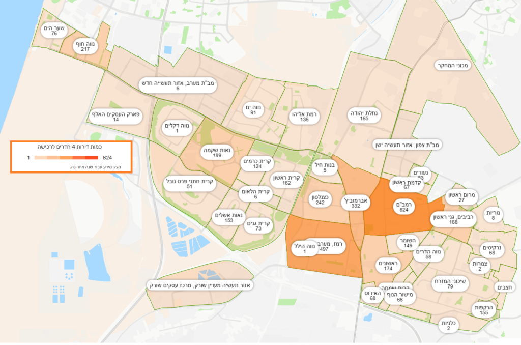 היצע דירות בנות 4 חד' מיד שנייה בשכונות העיר בשנה האחרונה – בממוצע חודשי