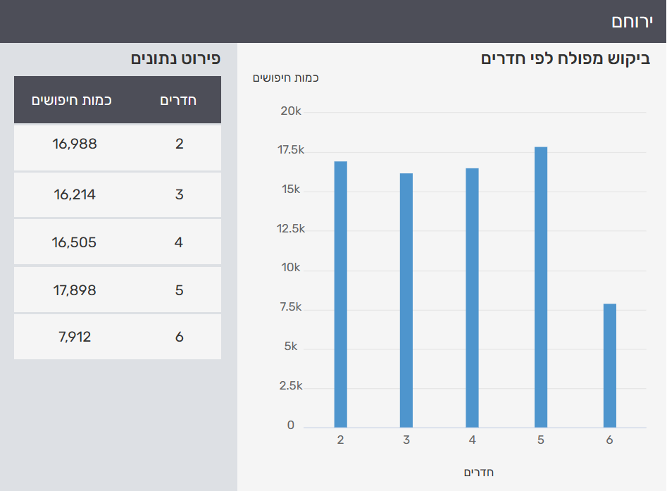 להלן התפלגות כמות החיפושים הכוללת בירוחם, על פי סוגי הדירות: