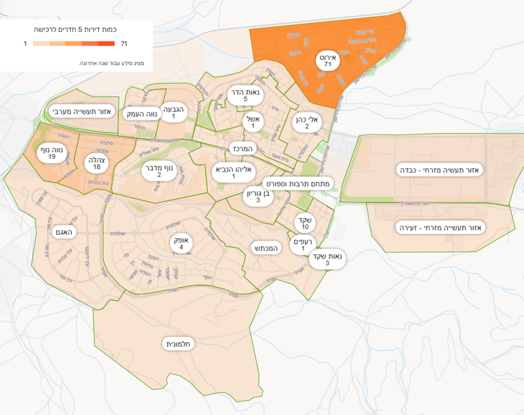 היצע דירות בנות 5 חד' מיד שנייה בשכונות העיר בשנה האחרונה – בממוצע חודשי